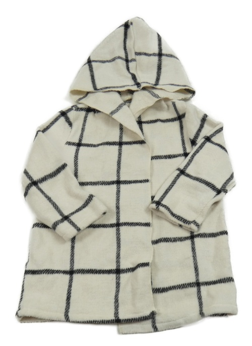 Smetanovo-čierny kockovaný cardigan s kapucňou