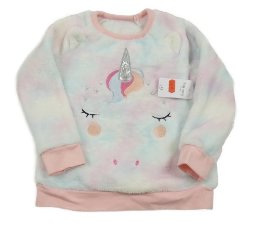 Nové - Bielo-ružovo-svetlomodrá chlpatá mikina s jednorožcom Nutmeg