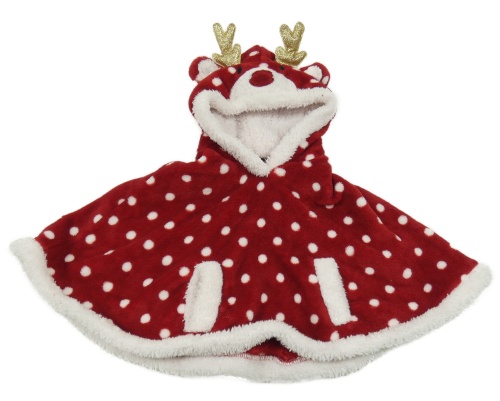 Tmavočerveno-biele bodkovaná é plyšové pončo s kapucí - sob in extenso