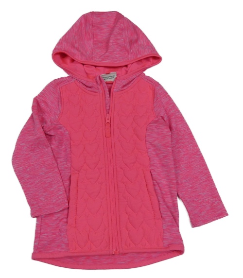 Neónově ružová melírovaná sportovni/šusťáková prepínaci mikina s prešívanými srdiečkami a kapucňou Topolino