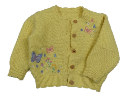 Žltý prepínaci sveter s výšivkami květin a motýlů Nutmeg
