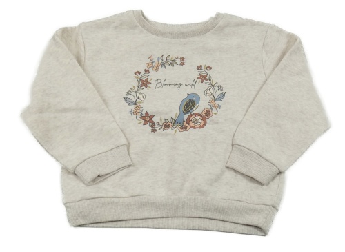Svetlobéžová melírovaná mikina s vtáčikom a kvietkami C&A