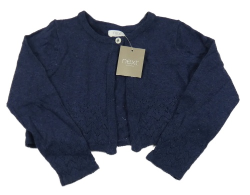 Nové - tmavomodré propínací svetrové bolérko s perforovaným vzorom Next
