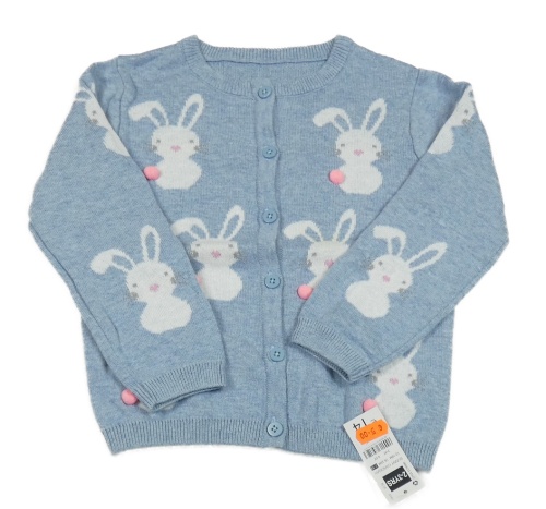 Nové - modrý melírovaný prepínaci sveter so zajačikmi St. Bernard