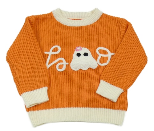 Oranžovo-smotanový rebrovaný sveter s duchem