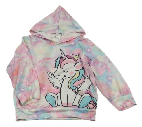 Farebná vzorovaná ľahká mikina s jednorožcom a kapucňou