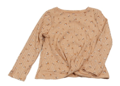 Světleoranžovo-bílé melírované žebrované mikinotriko s kvietkami a překřížením Topolino
