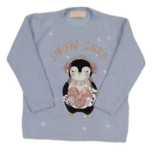 Svetlomodrý chlpatý ľahký sveter s tučňákem Lipsy London