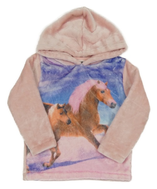 Svetloružová plyšová mikina s koníky a kapucňou Topolino