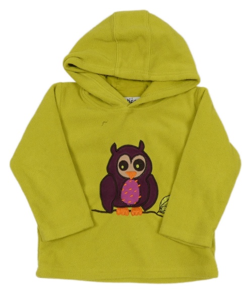 Limetková fleecová mikina so sovičkou a kapucňou pbc