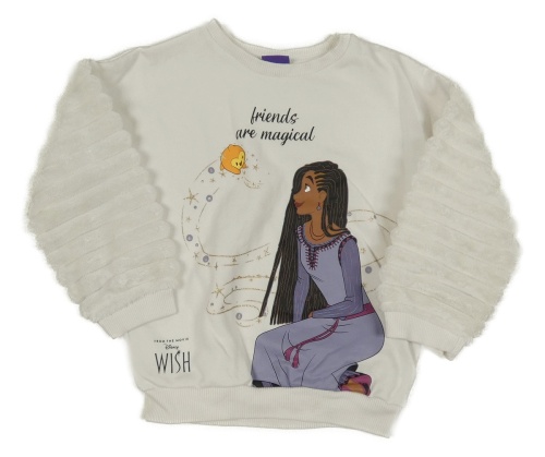 Biela mikina s plyšovými rukávy a potiskem - Přání Disney