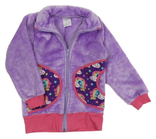 Lila plyšová prepínaci mikina s duhami