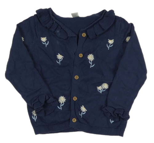 Tmavomodrý prepínaci sveter s výšivkami květů Tu