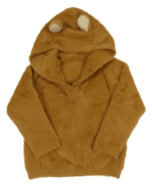 Okrový chlpatý sveter s kapucňou s uškami