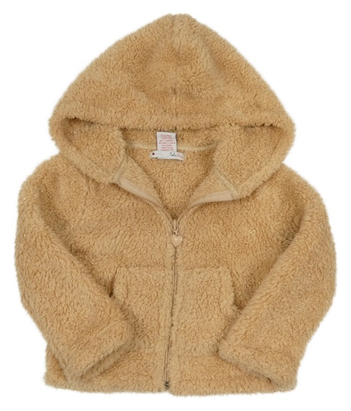Hnedá trblietavá chlpatá prepínaci mikina s kapucňou