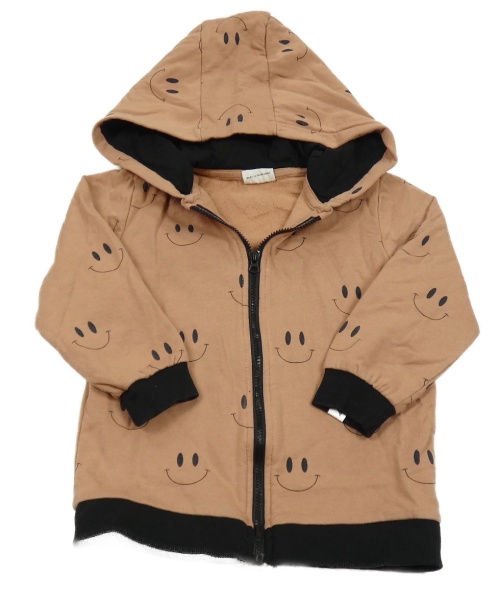 Starorůžovo-čierna prepínaci mikina so smajlíkmi a kapucňou