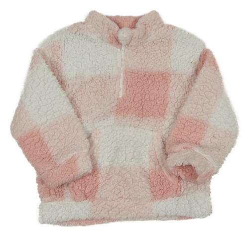 Bielo-ružová kockovaná huňatá mikina Shein
