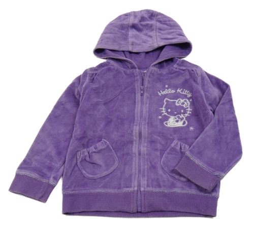 Fialová zamatová prepínaci mikina s Kitty a kapucňou