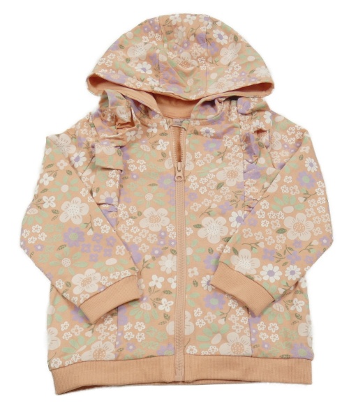 Staroružová kvetovaná prepínaci mikina s volánikmi a kapucňou So Cute