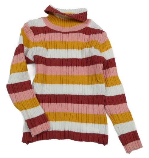 Bielo-ružovo-horčicový pruhovaný rebrovaný svetrový rolák Nutmeg