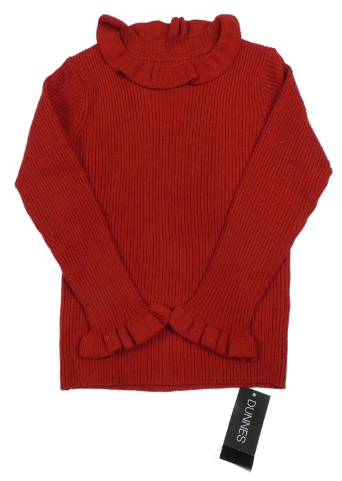 Nové - červený rebrovaný úpletový sveter s volánikmi St. Bernard
