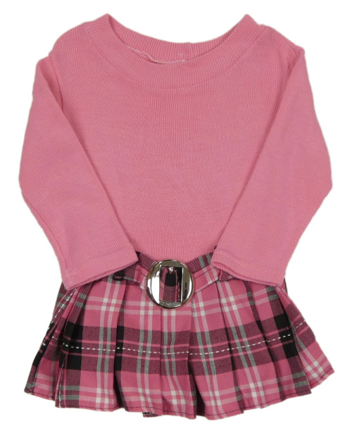 Ružová svetrová tunika s kostkovaným prvkem a opaskom