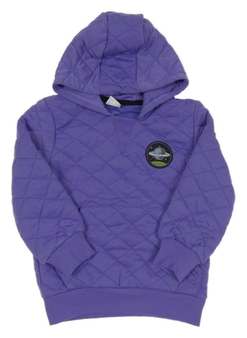 Fialová prešívaná mikina s nášivkou a kapucňou