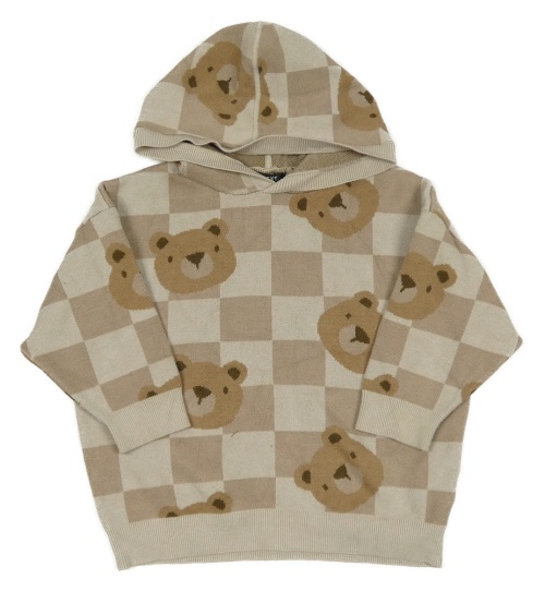 Béžovo-hnedý kockovaný sveter s medvedíkmi a kapucňou Next