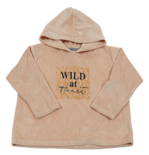 Svetloružová plyšová mikina s nápisom a kapucňou