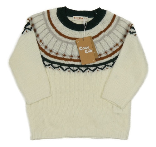 Nové - Smetanovo-tmavozelený vzorovaný sveter