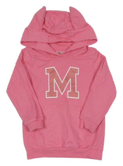 Ružová mikina s písmenkom a vreckom a kapucňou s uškami so cute