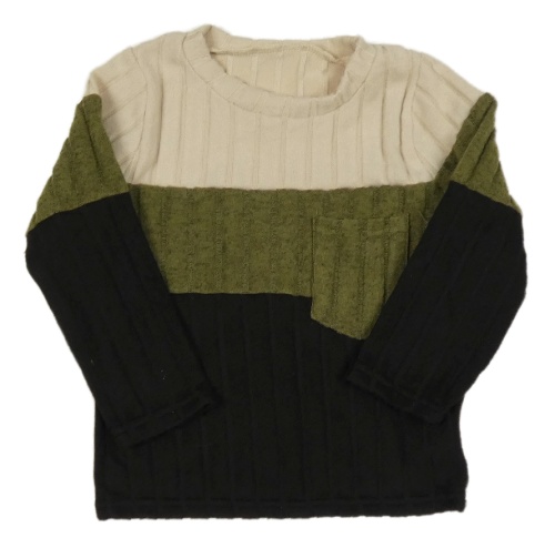 Smetanovo-kaki-čierna rebrovaná úpletová mikina s vreckom