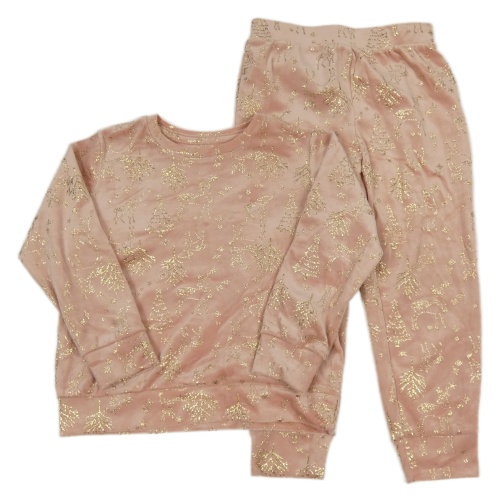 Svetloružové plyšové pyžama s jeleňmi Matalan