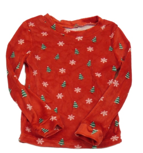 Červené plyšové pyžamové tričko so stromky a vločkami