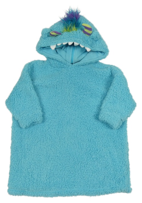 Azurová huňatá oversize dlhá domáceá mikina s dvojitou kapucí - príšerka Tu