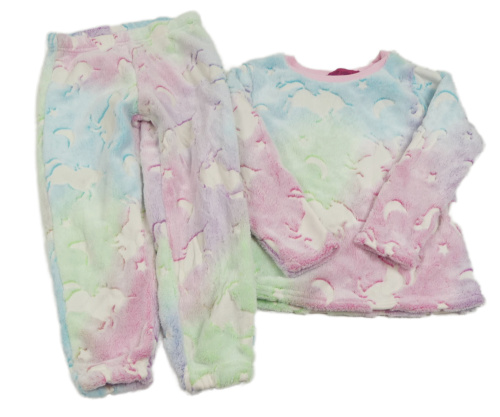 Farebné duhové chlpaté pyžama s jednorožcami