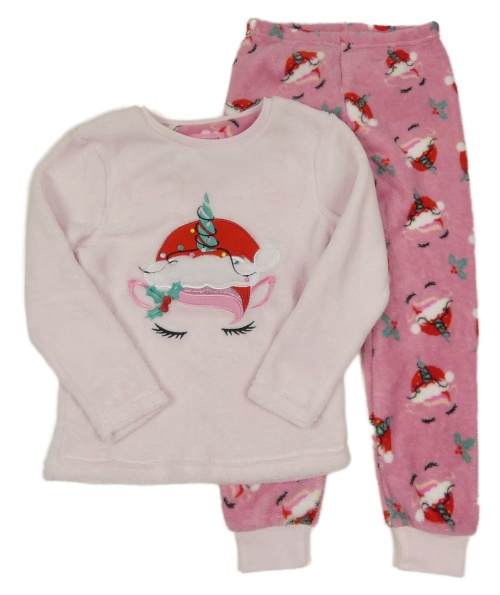 Svetloružová -ružové plyšové pyžama s jednorožcom s vánočním motívom PRIMARK