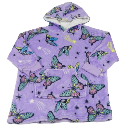 Fialová plyšová oversize dlhá mikina s motýlikmi a vreckom a kapucňou PRIMARK