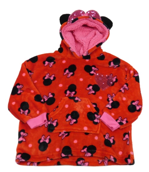 Červeno-tmavoružová plyšová oversize dlhá mikina s Minnie a vreckom a kapucňou PRIMARK