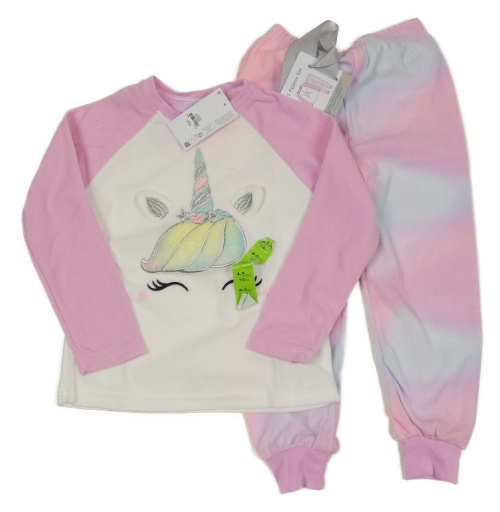 Nové - bielo-ružovo-batikované fleecové pyžama s jednorožcom PRIMARK