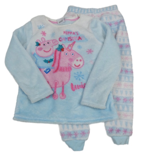 Světlemodro-biele chlpaté pyžama s Peppou a jednorožcom George