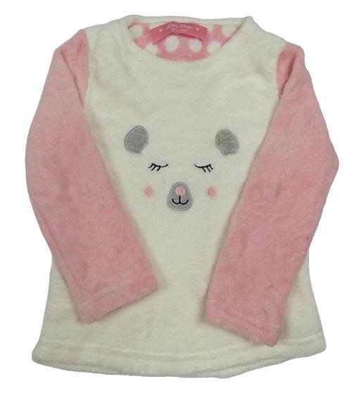 Bielo-ružová chlpatá pyžamová mikina s medvěďom
