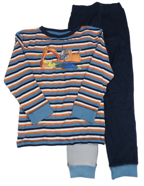 Tmavomodro-bielo-oranžové pyžama s bágrom