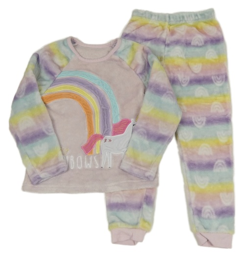 Svetloružová -farebné plyšové pyžama s jednorožcom a dúhou Nutmeg