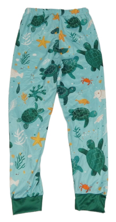 Světlemodro-tmavozelené pyžamové nohavice so želvičkami a rybičkami