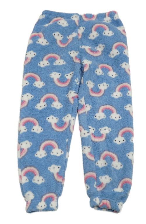 Modré plyšové pyžamové nohavice s obláčikmi a duhami