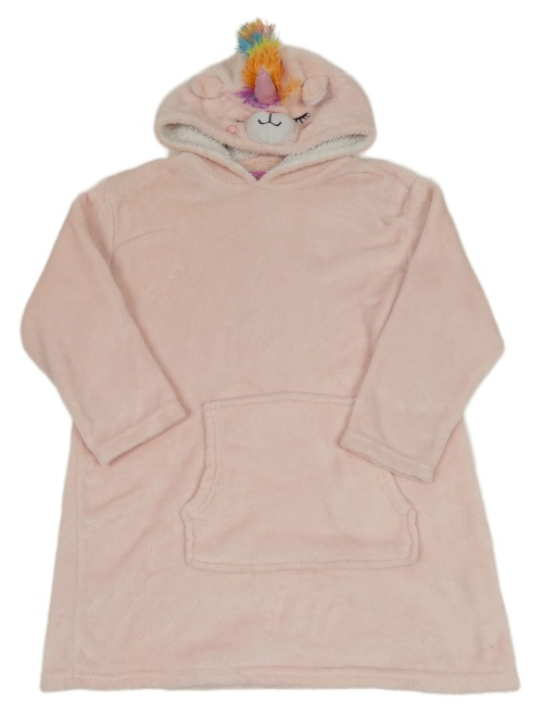 Svetloružová plyšová oversize dlhá mikina s vreckom a kapucňou s jednorožcom Dreamer