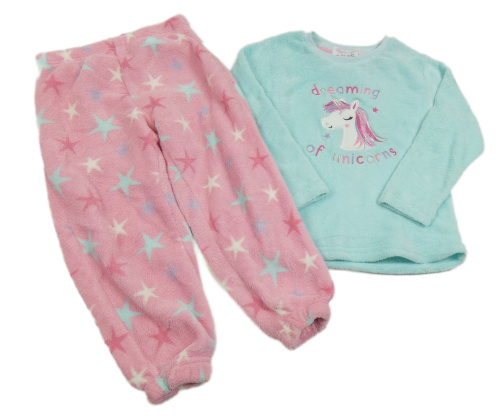 Mátovo-ružové plyšové pyžama s jednorožcom a hviezdičkami