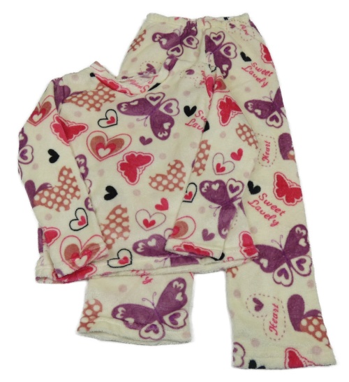 Smotanové chlpaté pyžama so srdiečkami