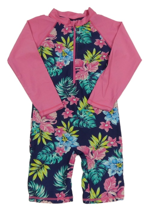 Tmavmodro-ružový UV overal s kvetmi